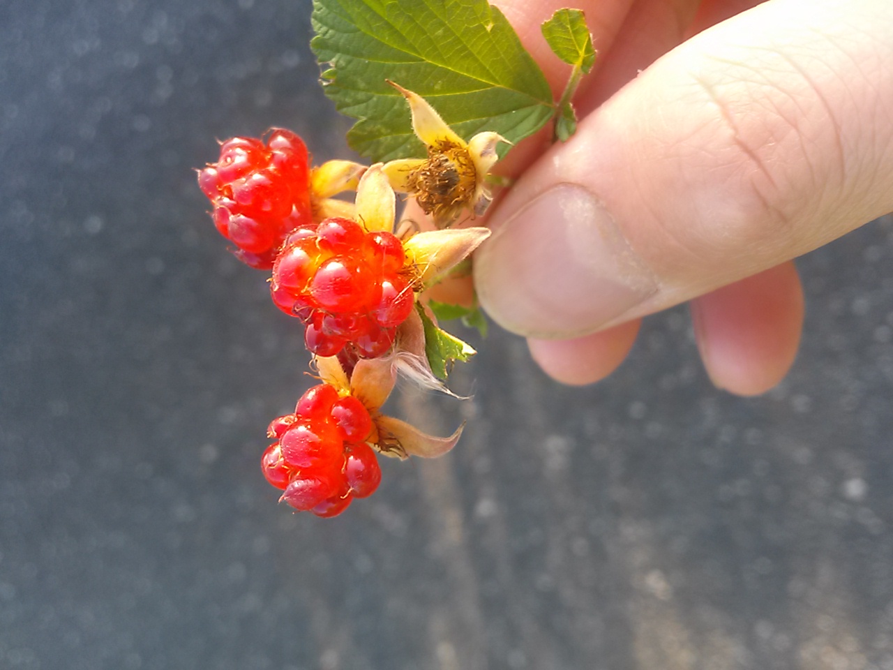 畦道にできてるやま苺