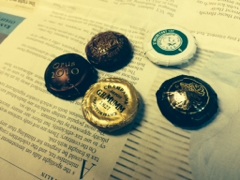 貯まりに貯まった空いたワインのキャップやコルクの整理をしながら・・・